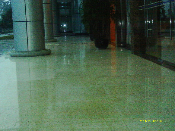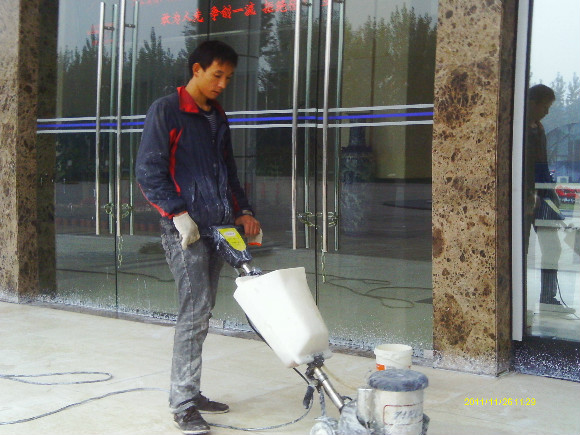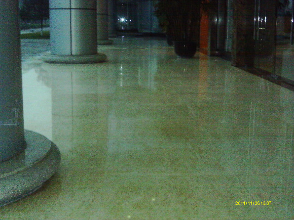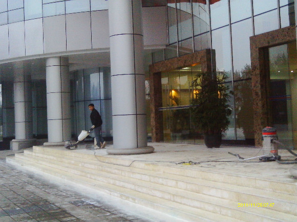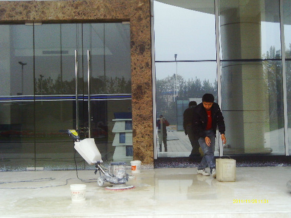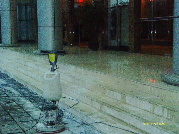 到了70年代末,一種可塑性水溶性結(jié)晶聚合物的誕生,亦即是現(xiàn)今常說(shuō)的水蠟,進(jìn)化了石材護(hù)理的歷史,可以利用這種物質(zhì)對(duì)不同材質(zhì)的大理石進(jìn)行護(hù)理。分底蠟(封蠟),面蠟(拋光蠟)及保養(yǎng)蠟(日常修補(bǔ)蠟)是對(duì)大理石的塑層進(jìn)行保護(hù)并利用高速拋光來(lái)增亮,對(duì)石材的保護(hù)起到一定的作用。但是這種水蠟不足之處是蠟層的硬度有限,稍欠保養(yǎng),腳步帶進(jìn)的塵土將很容易把蠟層及石材磨花。同時(shí),遇上雨水季節(jié),因室外雨水塵埃會(huì)有一定的雜質(zhì),通過(guò)人的腳步帶進(jìn)后,對(duì)蠟層的分子組成將造成一定的影響。直觀看到是蠟層變黃及缺光澤,也就是以后常見到的許多客戶為什么須經(jīng)常將腐蝕的蠟層用起蠟水脫去,再重新分工序打上底蠟和面蠟,每次的工作量及耗用的物料較大,這種工藝現(xiàn)市場(chǎng)上很普通,我們稱為石材打蠟第二代。