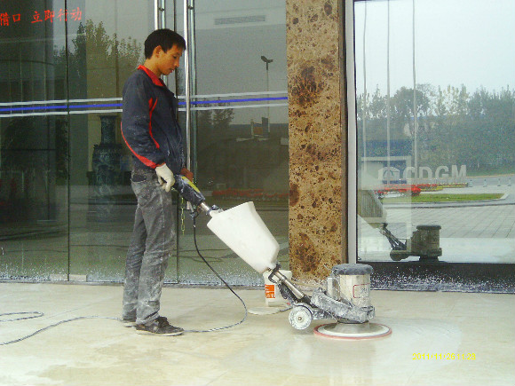 再到80年代末,緣自歐洲程序的一種工藝,“晶面處理系統(tǒng)”于90年代推進(jìn)中國(guó)市場(chǎng)。這個(gè)系統(tǒng)就是針對(duì)水蠟工藝上硬度、光澤、清澈度不夠及工藝復(fù)雜等不足改良而成的,其工藝原理就是在石材投入使用及未受磨損前,以幾種水晶加強(qiáng)劑配合機(jī)械,利用石塊籍壓于熱力產(chǎn)生之化學(xué)作用,先將石材表層下的氣孔封閉,使其污垢不能滲入,同時(shí)表層上加上幾層熱處理保護(hù)層,起到增加石材表面的硬度和光度,更有防滑之功效,石質(zhì)原有天然色澤得到帶出及全面性保護(hù),保持度教一般水蠟高幾倍。長(zhǎng)期使用,耗用的人力物料成本較水蠟低,無(wú)須每天補(bǔ)蠟及定期起蠟等復(fù)雜工序,此工藝為目前大理石保養(yǎng)及翻新后晶面的理想工藝,我們稱為石材打蠟第三代。
